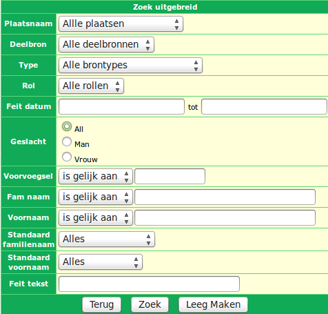 Heeft u de keuzes gemaakt klik op Zoek. U keuze wordt altijd beperkt tot de eerste 10000 personen